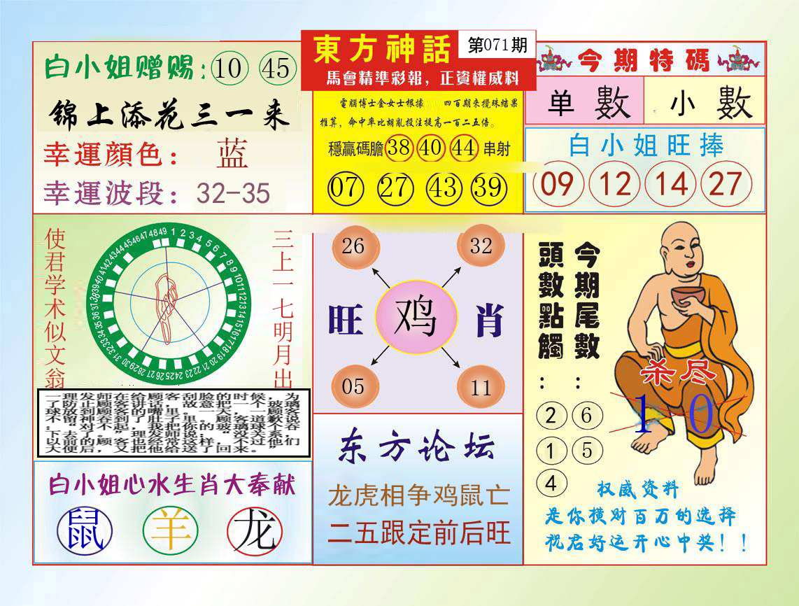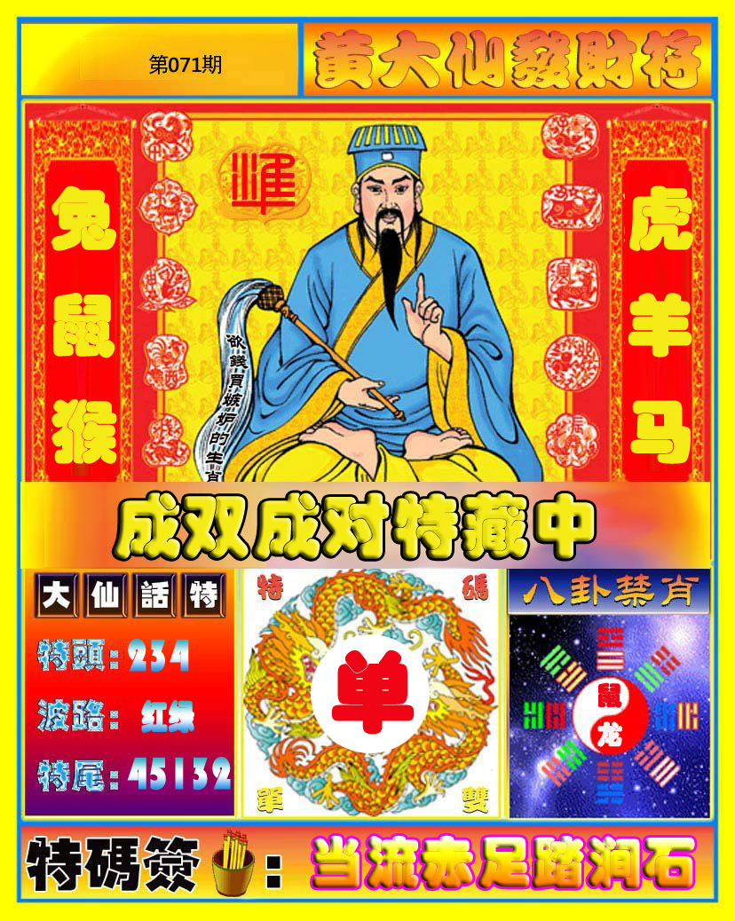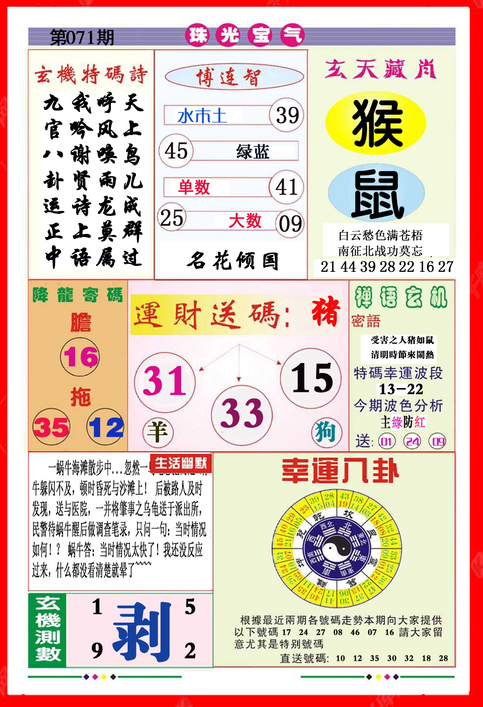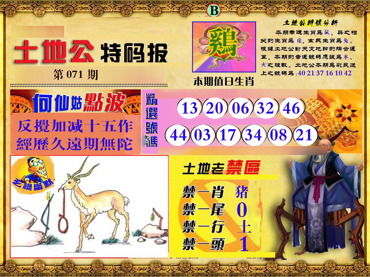 | 第071期 | 牛 虎 鼠 羊 猴 龙 兔 | 开 ???? |